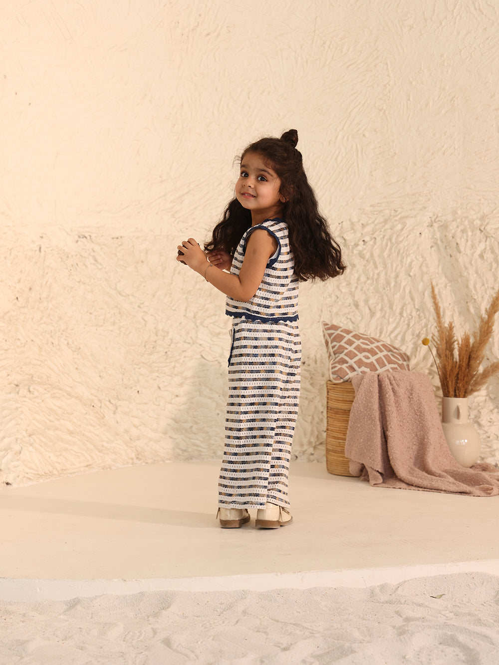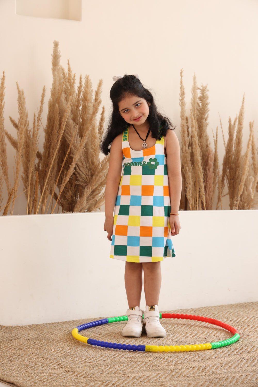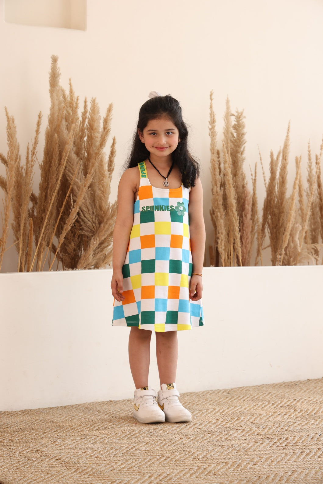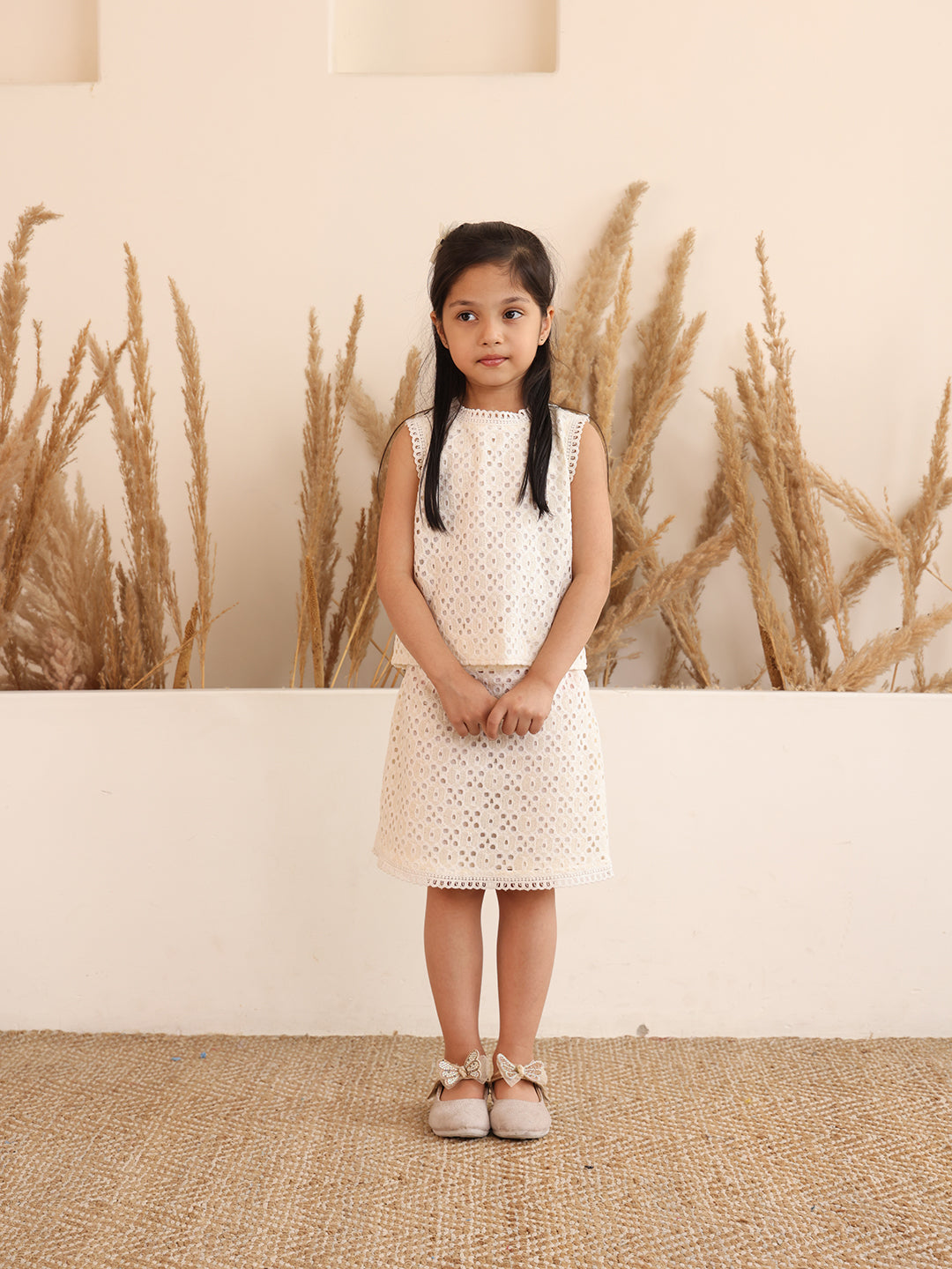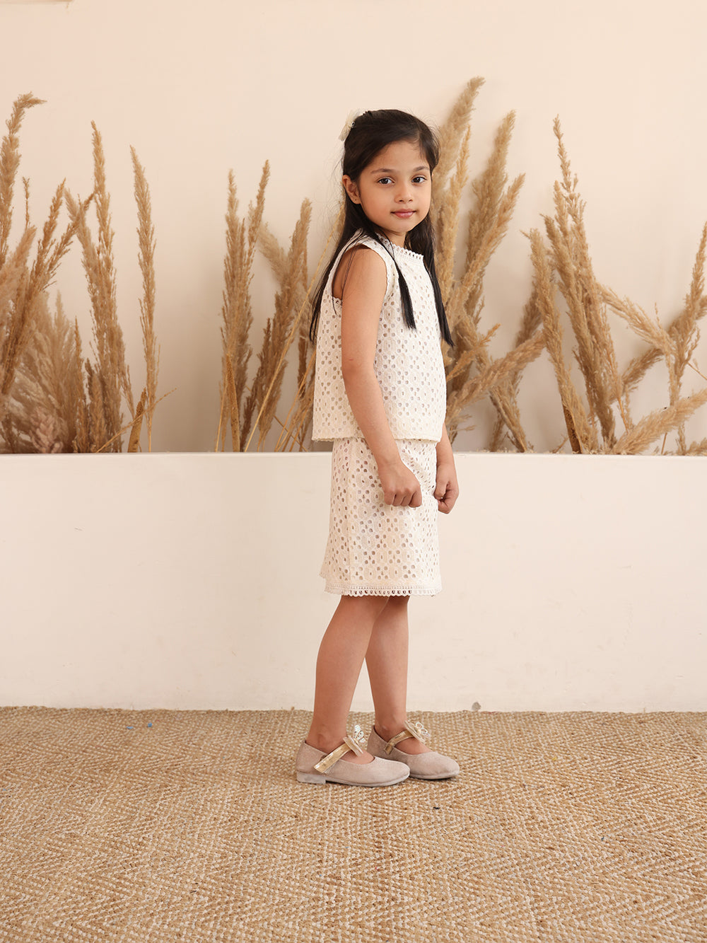 Asymmetrical stylish top with multicolor printed umbrella skirt for girls