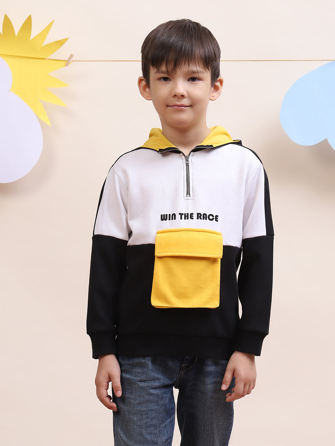 5. Boys' Color-Block Hoodie with Yellow Pocket