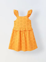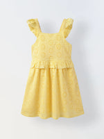 Yellow Cotton Sleeveless Schiffli Dress For Girls