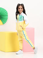 Girls Colorblock Blue & White Sport Tracksuit Set