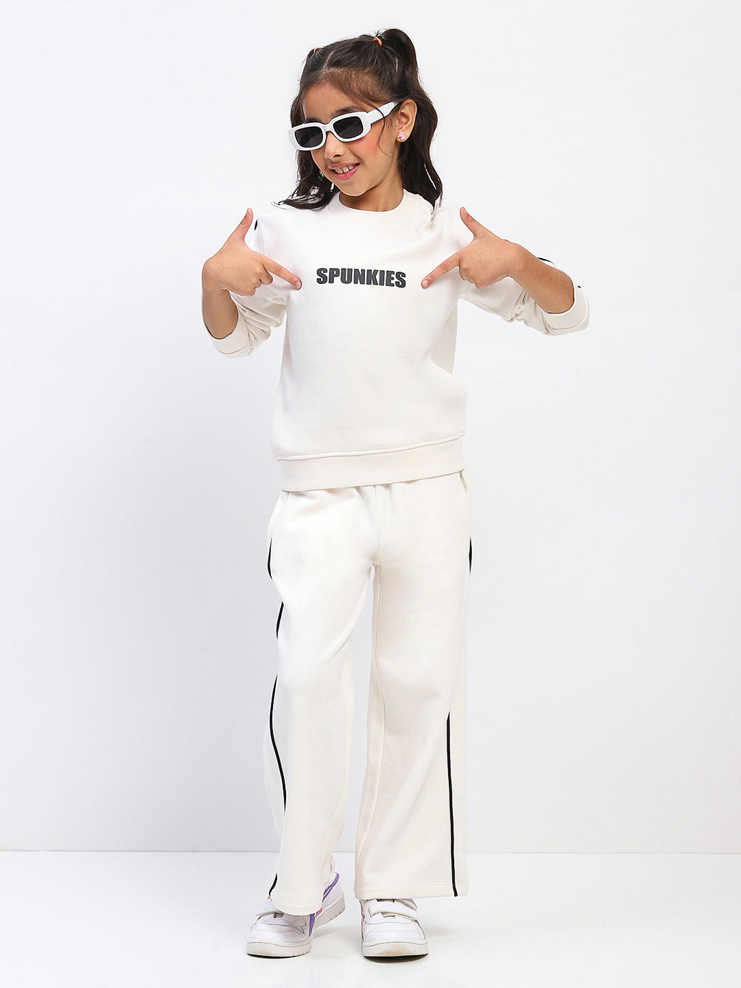 Girls White Long Sleeve Sweatshirt Set