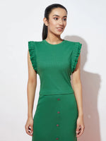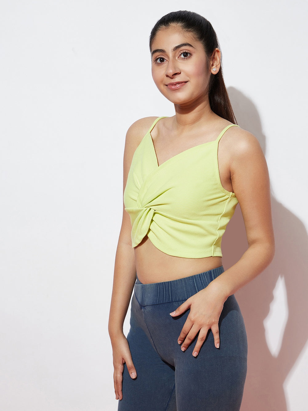 It's time to up your young girl’s style quotient with green Spunkies ribbed crop top. With twist detailing on the front, this chic top instantly elevates your daughter’s style and look. It also lends soft and comfortable fit, thanks to its heavy-quality cotton rib with elastane fabric. Finished with spaghetti straps, this top looks great with every bottom wear.