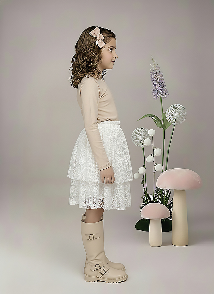 Girl's White Lace Tiered Ruffle Skirt