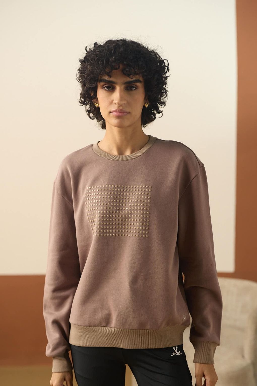 Simplicity meets style with this Minimal Dot Grid Crewneck Sweatshirt. Featuring a clean and modern dot grid graphic at the chest, this sweatshirt brings a subtle design twist to a classic silhouette. Made from a soft cotton-blend fabric, it offers a relaxed fit, ribbed cuffs and hem, and all-day comfort. The muted mauve-brown tone makes it easy to pair with jeans, joggers, or layered looks