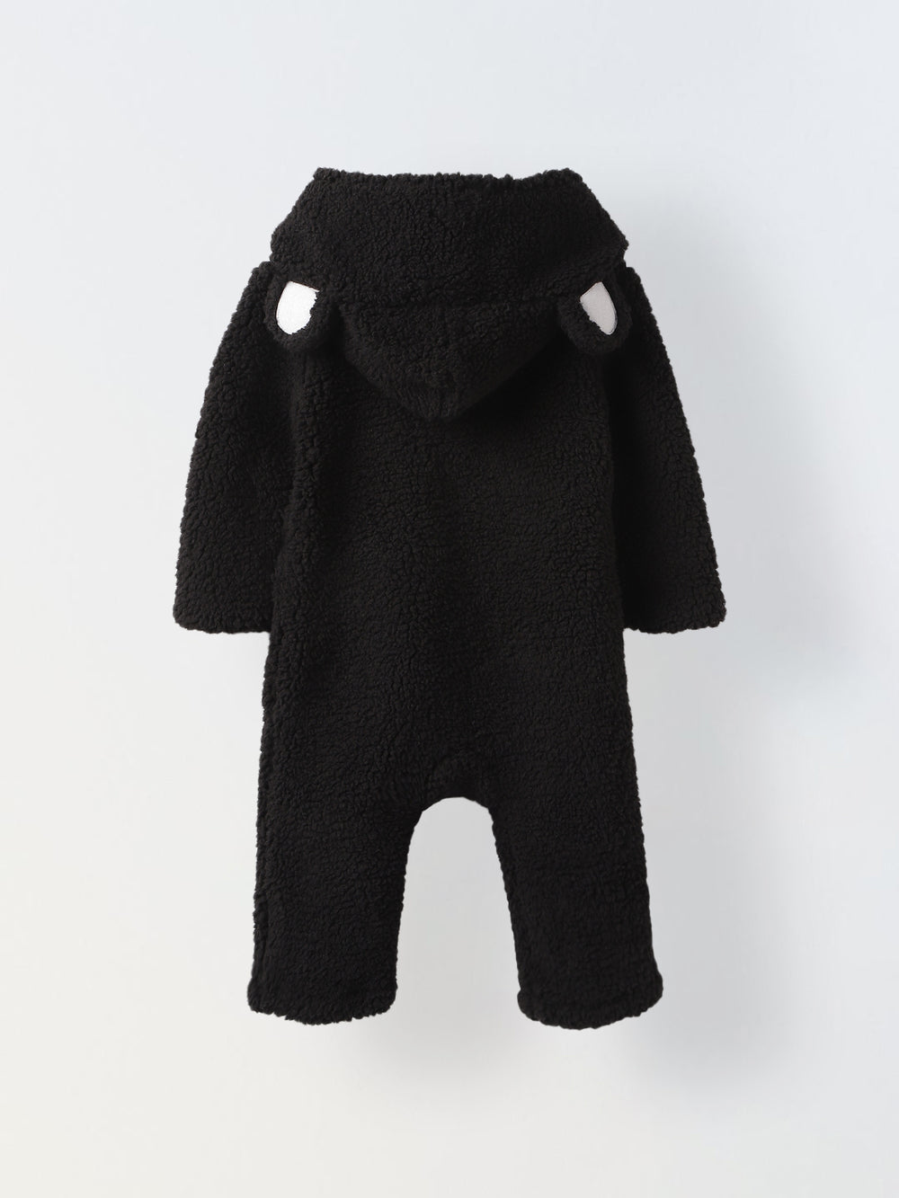 Infant Black Sherpa Bear Romper with Ear Details - Cozy & Adorable Hooded Outfit