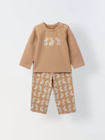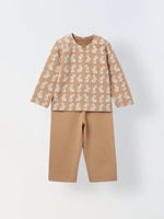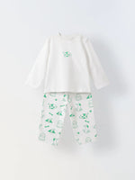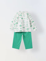 Infant Cotton White and Green Full Sleeve Printed Sets