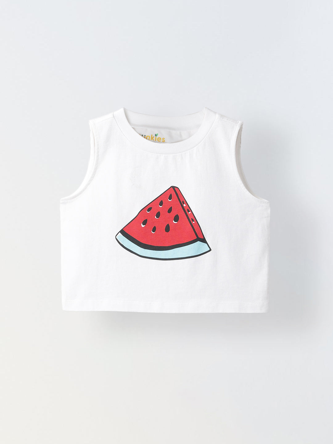 White Watermelon Print Sleeveless Crop Top – Girls